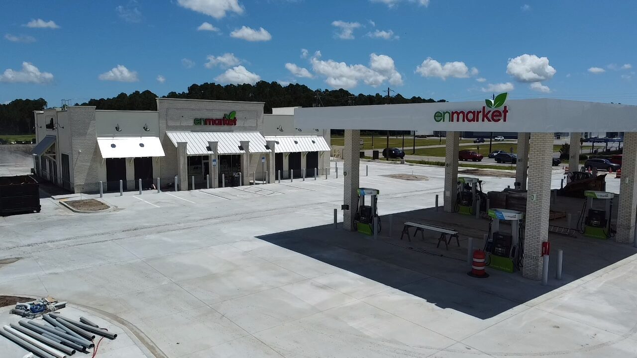 in Kingsland, Georgia. The project involved complete site development, including underground fuel storage tank installation, canopy construction, and a full-service convenience store build-out.